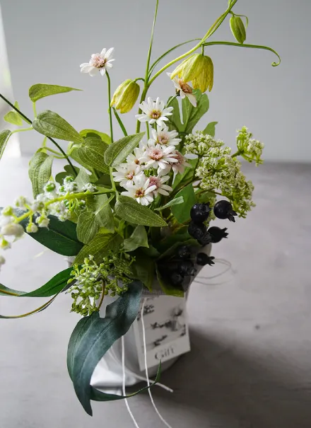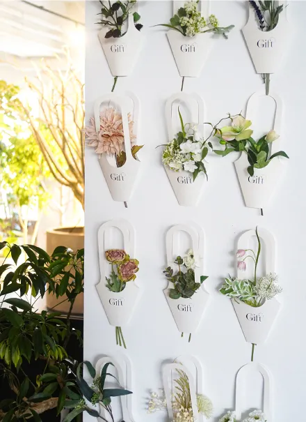 about her.Giftならオシャレなアーティフィシャルフラワーや生花、ドライフラワーを添えることができます。穏やかな淡いトーンで合わせたり、元気な明るいトーンの花を添えたり、あなたの気持ちをお花に託して、素敵なギフトのご提案できます。